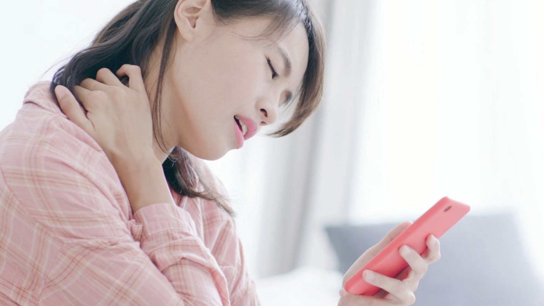Questa dipendenza ci costringe ad una innaturale postura del collo e della testa. Con il collo piegato in avanti di quasi 45° e lo sguardo fisso sullo schermo, lo stress sulla colonna cervicale aumenta drasticamente.